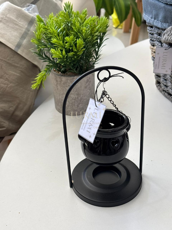 Hornito colgante en color negro para vela y esencia.