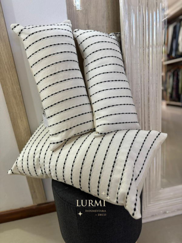 Set X3 de almohadones de algodón blancos con rayas negras, con funda desmontable.