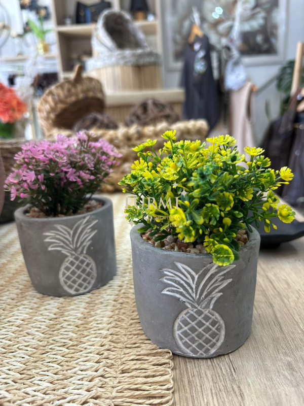 Plantita decorativa con maceta de cemento.